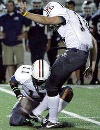 A highlight in what was season of dim results, Swanson’s kick is now among the best in California prep history, tying him for third all-time. A 6-foot-2, 180-pound thunder-foot, Swanson was the only player to score in every game for the Wolves (0-10 overal, 0-7 Big VIII), doormats of Inland Area large-school football. He averaged 46.8 yards per punt, had 24 drop inside his opponent’s 20, and had punts of 60 or more yards in each of his last four games. Swanson’s longest punt? 75 yards. Oh, and of his 29 kickoffs, 24 resulted in touchbacks.