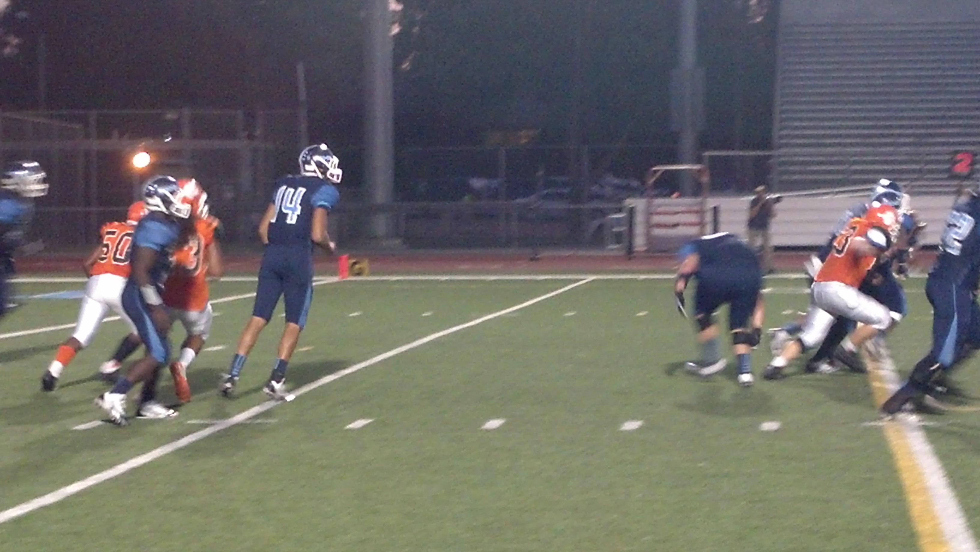 “Damon kept us in the game. He made three great passes but still gotta hold onto the football. We had a big play for a slant — could’ve gone all the way — fumbled and that hurt us, momentum-wise, for sure. I think we probably would’ve scored on the play, or got close, and maybe the momentum would’ve shifted our way. I kinda talked the game down. Our kids get so excited for Poly, it’s almost like they get over-hyped. I tried to really let it lay low this week and still, we get out there and its a rivalry, we just get very excited and kinda play without our minds.”