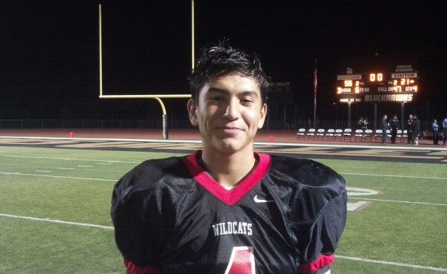 The 14-year-old just completed his second game as starting quarterback of REV’s varsity football team and did so impressively, passing for 338 yards and three touchdowns as the Wildcats opened Citrus Belt League play with a 55-21 victory over San Bernardino Cajon on Friday, Oct. 11, 2013.
