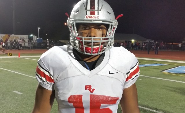 He stalked Riverside Arlington QB Carter Alvarado in Week 10 before undercutting a short passing route and returning his interception 15 yards for a touchdown as Rancho Verde built an early 21-0 lead en route to a 55-6 victory on Friday, Nov. 4, 2016.