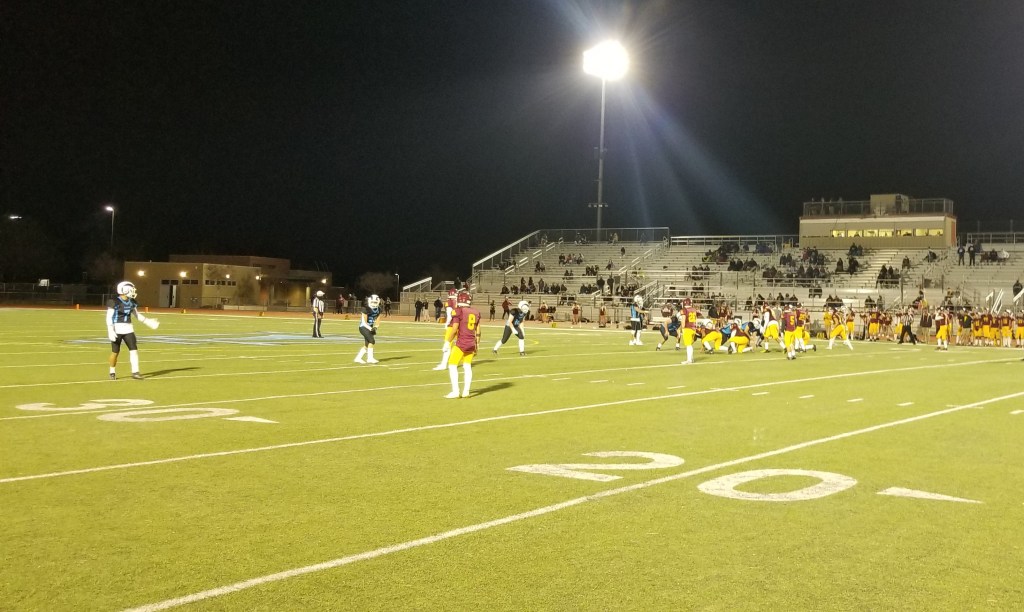RIVERSIDE — The Riverside Ramona-Riverside Arlington Week 1-A varsity football game on Friday, March 19, 2021, was a first glimpse at the affects the COVID-19 pandemic has had on high school football teams.