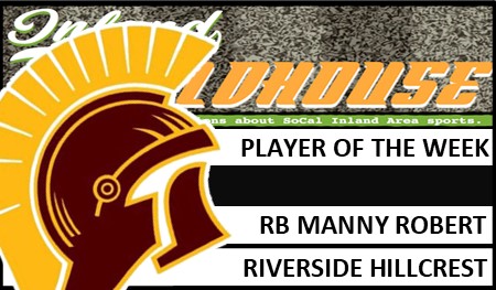 Riverside Hillcrest senior Manny Robert RB/WR/DB Manny Robert has been selected InlandFieldhouse.com’s Player of the Week after a scintillating Week 4-A performance in a 35-20 victory over Riverside Ramona in a River Valley League game on Thursday, April 8, 2021.