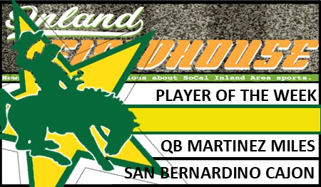 San Bernardino Cajon sophomore Martinez Miles has been selected InlandFieldhouse.com’s Player of the Week after a wildly productive Week 0-B performance in a 55-14 victory over Rialto Carter in the season-opening game on Friday, Aug. 20, 2021.