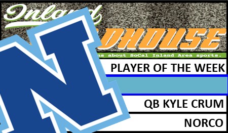 Norco senior Kyle Crum has been selected InlandFieldhouse.com’s Player of the Week after a clean Week 1-B performance in a 40-22 victory over Santa Margarita in a nonleague game on Thursday, Aug. 26, 2021.