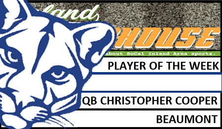 Beaumont sophomore Christopher Cooper has been selected InlandFieldhouse.com’s Player of the Week after an outstanding Week 2-B performance as the Cougars defeated Summit 33-22 in a nonleague game on Friday, Sept. 3, 2021.
