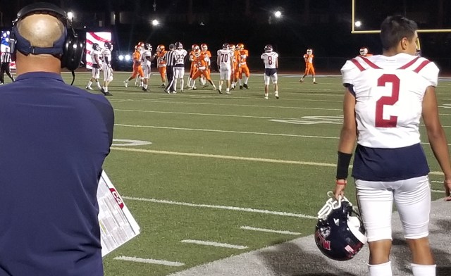 Riverside Poly head coach John Rice: “We played a horrible game in every way we could. We made mistakes on offense, we made mistakes on defense that lay squarely on my shoulders. We will correct it and we will get better. We’re going to have a successful season. We’re going to play at least seven more games. We’re going to be in the playoffs and have a good run. The best part about this game is that it’s over. I have to do a better job. We have zero excuses. Zero excuses. We laid an egg and that’s my fault. I’m the head coach and my job is to make sure that they’re ready mentally and physically, and we were not ready mentally and that’s my fault, and I have to do a better job. I’ve been coaching long enough to make that happen and I didn’t, so I failed them and I have to do a better job. We practiced well (but) we have to do a better job of motivating kids internally. We have to contribute to the internal motivation – you can’t just make speeches and have them get fired up – we have to find ways to snap them out of setbacks. You have to face adversity and help them get out of adversity. We had some adversity early in the game and we didn’t come back from that. To me, that’s on me to get them to get our of that and snap out of it and fight back, and we didn’t do that and it was a spiral.”