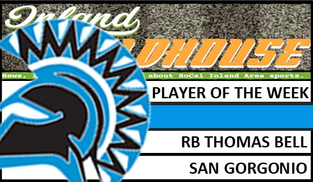 San Gorgonio senior Thomas Bell has been selected InlandFieldhouse.com’s Player of the Week after a ringing Week 3-B performance as the Spartans defeated Riverside Notre Dame 28-18 in a nonleague game on Thursday, Sept. 9, 2021.