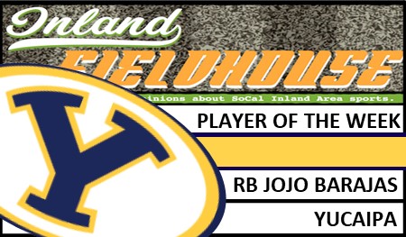 Yucaipa senior Emmanuel “JoJo” Barajas has been selected InlandFieldhouse.com’s Player of the Week after historic Week 4-B performance as the Thunderbirds defeated San Diego University City 37-28 in a nonleague game on Friday, Sept. 17, 2021.