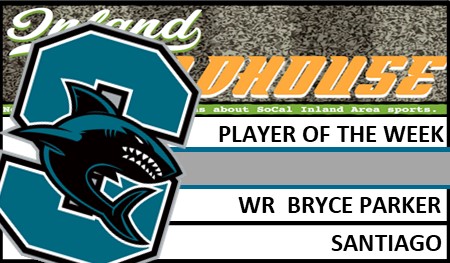 Corona Santiago junior Bryce Parker has been selected InlandFieldhouse.com’s Player of the Week after a defense-defying Week 7-B performance despite the Sharks’ loss to Centennial, 69-14, in a Big VIII League game on Thursday, Oct. 7, 2021.