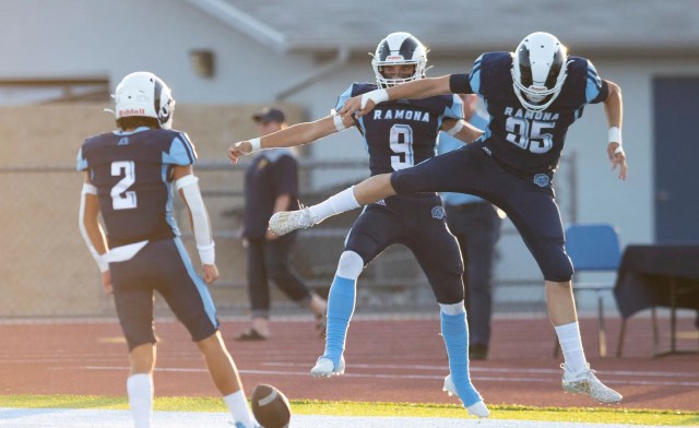Riverside Ramona head coach Ken Mushinskie: “Just the electricity of it being a Riverside school versus a Riverside school. Both teams were evenly matched. We know how good North is and they know we have some talent, so I think it’s just a win-win for Riverside when Riverside schools play each other with a Week 0 game where we’re able to dedicate the field and honor the (RUSD) Board and Mayor Lock-Dawson. It just made it more special. It’s great to come out with a win but both teams were giving each other the ball back. You could tell it was a first game. We don’t know who’s on PAT or punt, things like that, so personnel changes were difficult for both teams. The kids played hard. North is a very talented and fast team, and they play super physical, so for us to come out with a victory is a great thing (and) a great start for Ramona.”