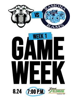 RAMONA (0-1 overall, 0-0 River Valley) lost a 42-35 shootout against inter-city rival JW North in Week 0 but also suffered from four fumbles and one interception as an entirely new offense hit the ground running for the first time. Junior RB Sincere Tolbert ran for a career-high 112 yards and a touchdown.