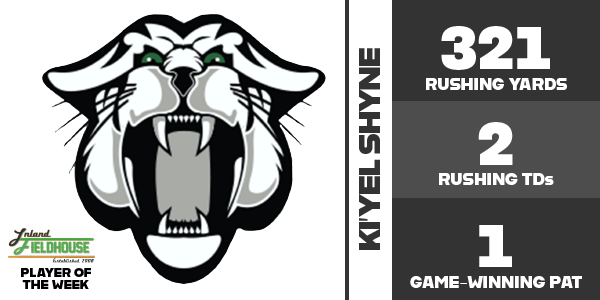 Kaiser senior Ki’yel Shyne has been selected InlandFieldhouse.com’s Player of the Week after running wild as the Cats defeated Los Osos, 50-49, in a CIF-Southern Section Division 9 quarterfinal round playoff game on Friday, Nov. 10, 2023.