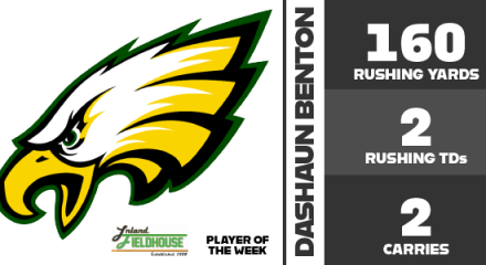 Eisenhower senior Dashaun Benton has been selected InlandFieldhouse.com’s Player of the Week after a inevitable performance as the Eagles beat Summit, 31-23, in a Sunkist League game on Friday, Oct. 20, 2023. Benton took his first carry 87 yards for a touchdown and then executed a fake punt 73 yards for another score as the … Continue reading
